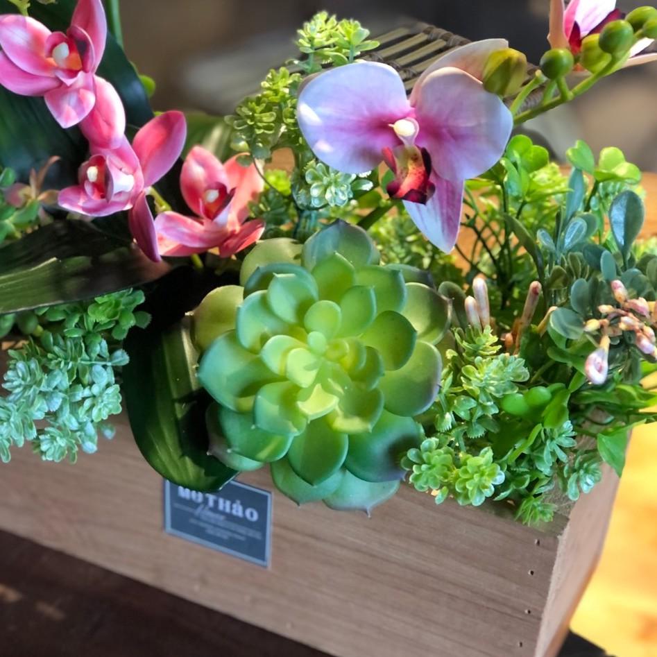 Lọ Hoa Giả Cao Cấp Mix Lan Hồ Điệp Và Sen Đá Trang Trí Nhà, Lọ Hoa Decor Shop, Quán Cafe, trang trí phòng khách