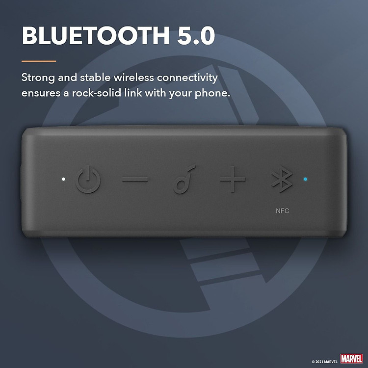 Loa Bluetooth Soundcore (By Anker) Select 2 - Phiên bản Marvel - A3125 | Nhỏ gọn và âm thanh ấn tượng: Bluetooth 5.0, kết nối một chạm NFC, âm trầm mạnh mẽ, chống nước IPX7.