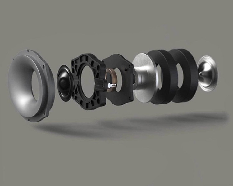 Trong khi đấy, loa woofer đảm nhiệm dải trầm với màng loa bột giấy kết hợp nhôm cho âm trầm rất tự nhiên, giảm độ méo tiếng, tăng khả năng chịu cường độ hoạt động. Màng loa giấy dập nổi với chi tiết hình cây búa  làm tăng độ cứng để cải thiện phản ứng nhất thời cho âm trầm mạnh mẽ nhưng tự nhiên.