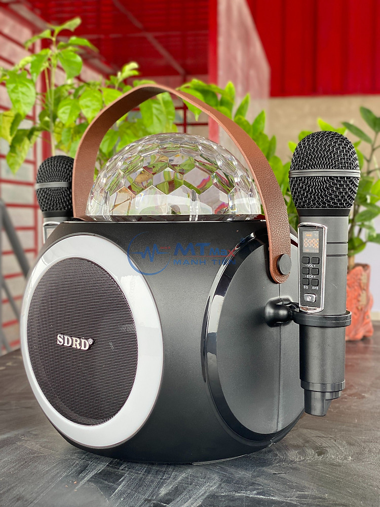Đi kèm với sản phẩm là 2 micro đa năng, giúp bạn có thể hát karaoke một cách chuyên nghiệp, trở thành ngôi sao trên sân khấu nhỏ dù đang ở nhà hay đang di chuyển. Thân máy được thiết kế với tay cầm tiện lợi, giúp bạn dễ dàng di chuyển sản phẩm.