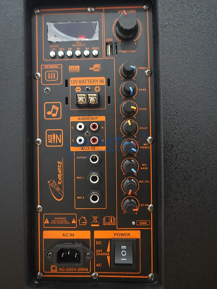 Loa Kéo với Nguồn điện AC 110V-220V, DC12V giúp loa hoạt động với hiệu suất tối ưu hơn bao giờ hết. Các chức năng điều chỉnh trên loa như Volume, Bass, Treble, Echo, Delay, GT.vol,... giúp bạn thuận tiện trong việc điều chỉnh âm thanh để phù hợp với chất giọng và nhu cầu giải trí của bạn.