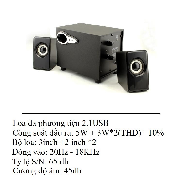 Loa vi tính cho điện thoại, máy tính, laptop bass có dây bộ 3 loa gồm 1 loa lớn 2 loa nhỏ