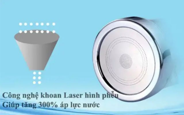🚿 Đầu lọc tăng áp 360 độ sử dụng công nghệ khoan laser hình phễu giúp tăng 30% áp lực nước.