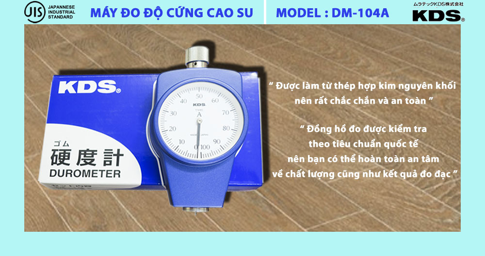 - Đồng hồ đo độ cứng cao su KDS DM-104A được làm từ thép hợp kim nguyên khối nên rất chắc chắn và bảo vệ an toàn cho thiết bị bên trong. Đây là đồng hồ cơ nên hiển thị số rất chính xác và không sử dụng pin.