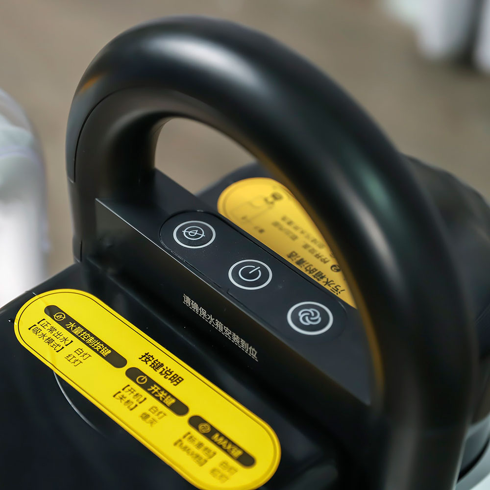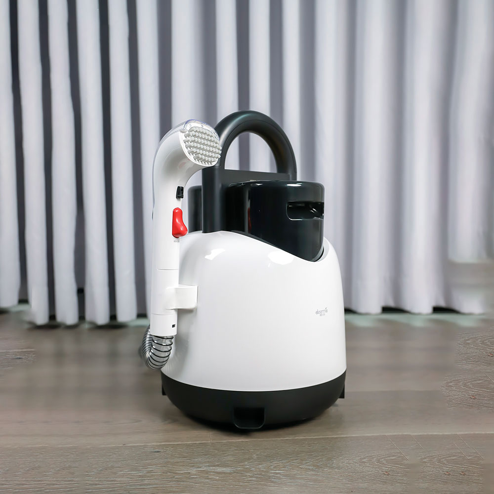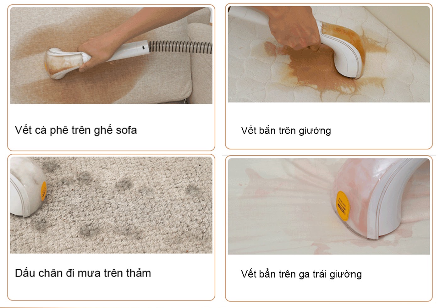 Đầu tiên là thao tác phun điều áp, người dùng dễ dàng nhấn nút để tạo tia nước đánh tan vết bẩn trên vải. Tiếp theo là với đầu bàn chải len lỏi sâu vào các sợi vải, đánh bay các vết bẩn cứng đầu từ trong ra ngoài. Cuối cùng là chế độ hút sâu, hút lốc xoáy để loại bỏ các vết bẩn hòa tan, nước thải cũng như bụi bẩn bám sâu bên trong thảm, giúp khô ráo so với cách giặt truyền thống mất thời gian để phơi hoặc sấy khô.