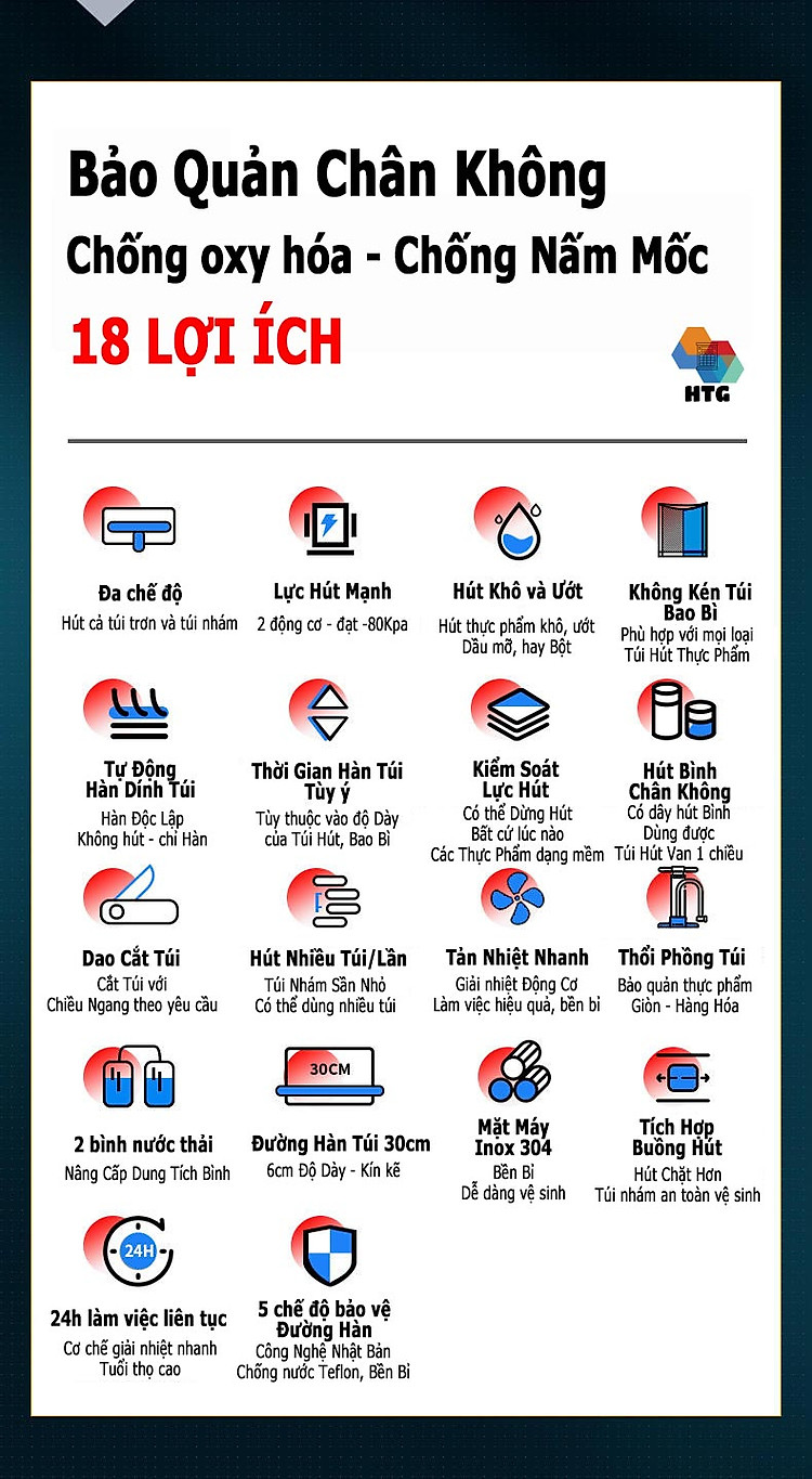 | Tính năng | hút mọi loại túi, hàn thông minh |