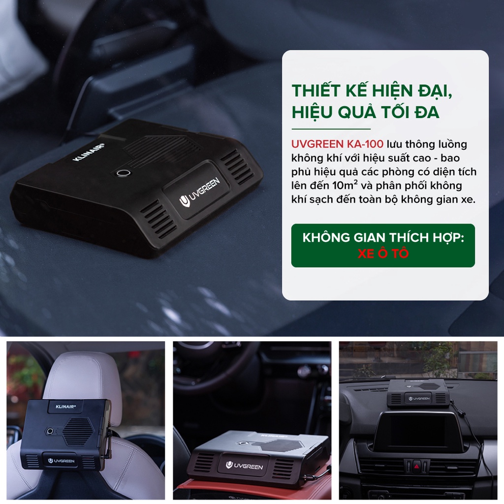 Máy Lọc Không Khí Ô Tô, Khử Mùi, Diệt Khuẩn UVGREEN KA100 - Công Nghệ UVC LED Từ Mỹ, Lõi Lọc Than Hoạt Tính Lọc Bụi Mịn, Loại Bỏ Mùi - Bảo Hành 12 Tháng