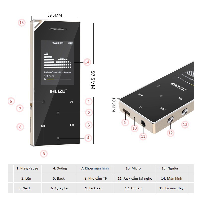 Giới thiệu [Mã 254ELSALE giảm 7% đơn 300K] Máy Nghe Nhạc MP3 Bluetooth Ruizu D05 Bộ Nhớ Trong 8GB