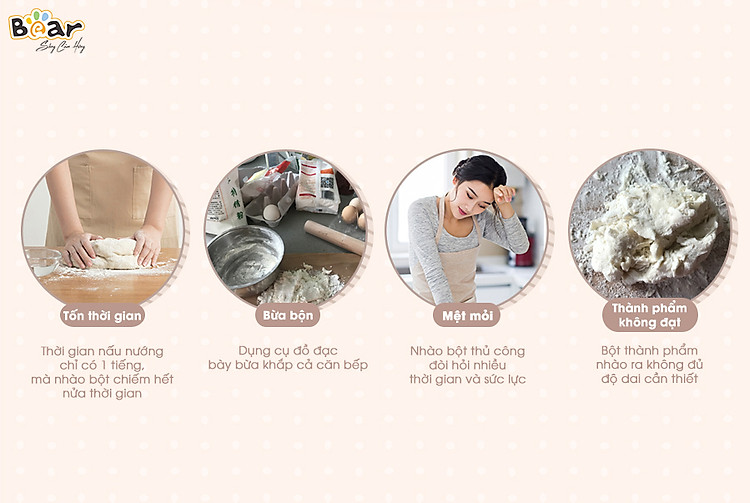 1. Máy trộn bột 3.5L Bear - Máy đánh bột giải quyết triệt để các vấn đề về thành phẩm bột Tiêu chí: Bột "đạt" hay "chưa đạt" phụ thuộc rất nhiều vào dòng bánh, cách tạo hình bánh, nguyên liệu làm bán...