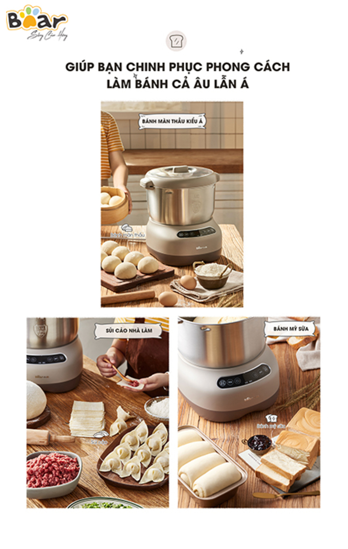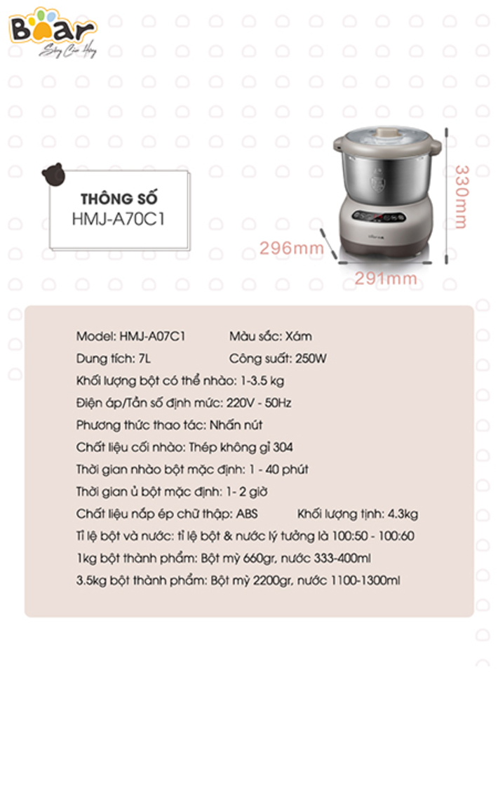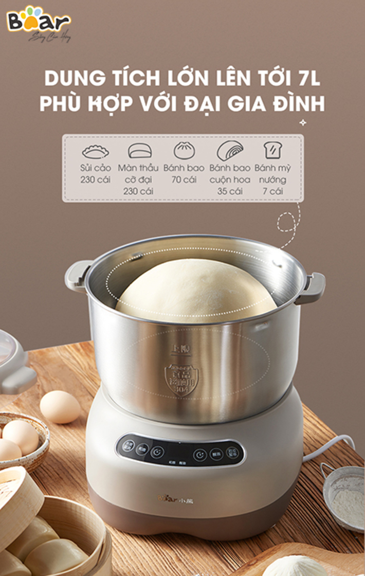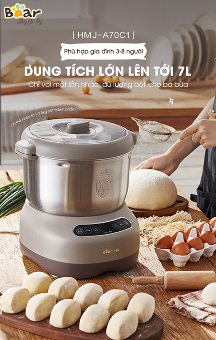 Giới thiệu Máy Trộn Bột Ủ Bột Lên Men, Máy Làm Bánh Tự Động BEAR HMJ-A70C1 Chống Dính Dung Tích 7 Lít Công Suất 250 W - Hàng Chính Hãng