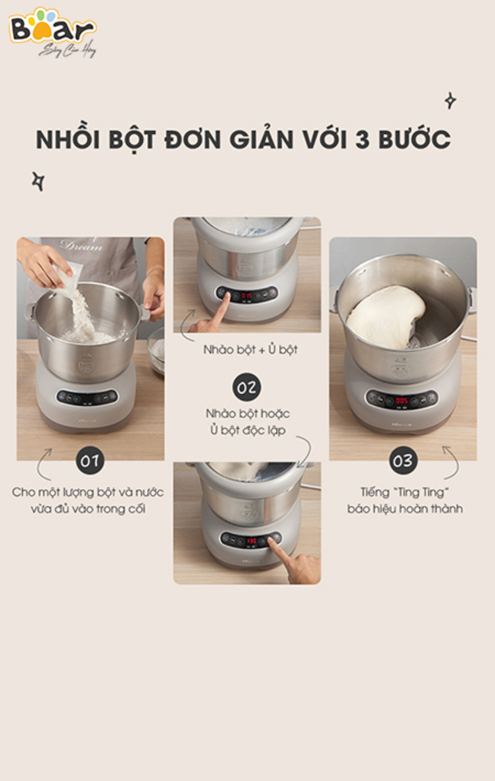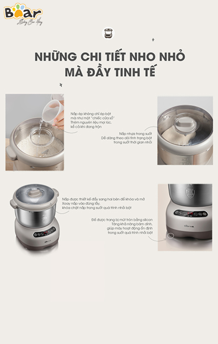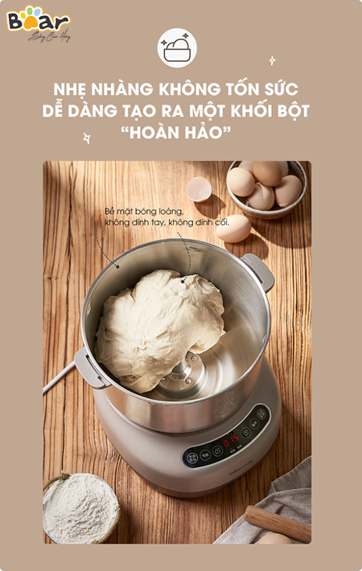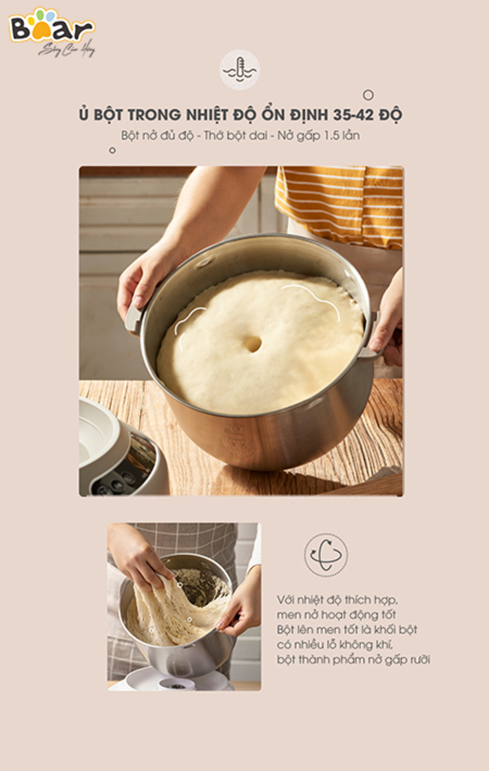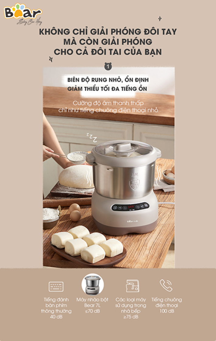 Giới thiệu Máy Trộn Bột Ủ Bột Lên Men, Máy Làm Bánh Tự Động BEAR HMJ-A70C1 Chống Dính Dung Tích 7 Lít Công Suất 250 W - Hàng Chính Hãng