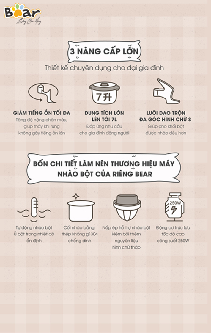 Máy Trộn Bột 7L Bear HMJ-A70C1 với dung tích 7L, động cơ mạnh mẽ giúp bạn nhào bột làm bánh nhanh chóng và thật đơn giản. Thiết kế thời trang nhỏ gọn phù hợp với mọi căn bếp, cùng Bear Việt Nam trải n...