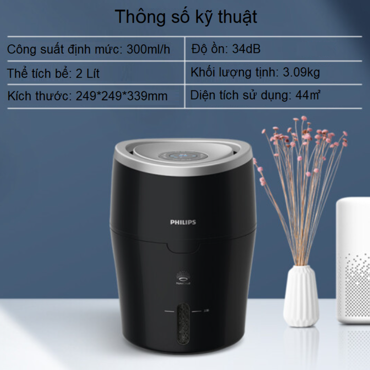 -️ Máy làm ẩm của Philips cho phép bạn lựa chọn độ ẩm từ 40, 50 và 60% cho sự thoải mái tối đa.