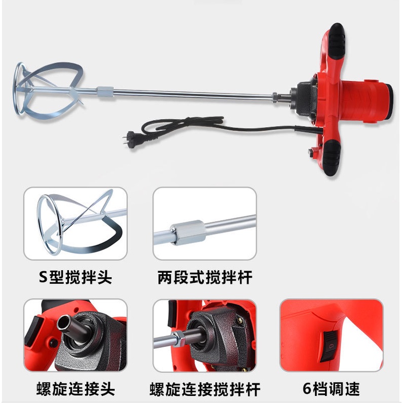 Máy có thiết kế tay cầm bản rộng cho bạn dễ dàng điều khiển. Cần trộn dài 60cm giúp bạn không cần cúi xuống để làm việc. Phần đầu khuấy lớn dạng xoắn hỗ trợ bột trộn đều, nhanh chóng, tiết kiệm thời gian, công sức lao động.