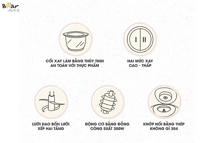 Máy Xay Thịt Đa Năng 2L Bear QSJ-B02Q1 (FC-B20V1) thiết kế thông minh là món quà hoàn hảo cho gian bếp của bạn. Công suất lớn lên đến 300W kết hợp với lưỡi dao sắc bén giúp bạn