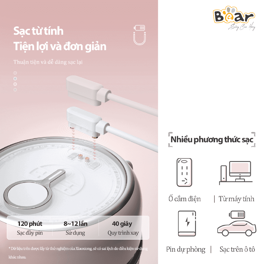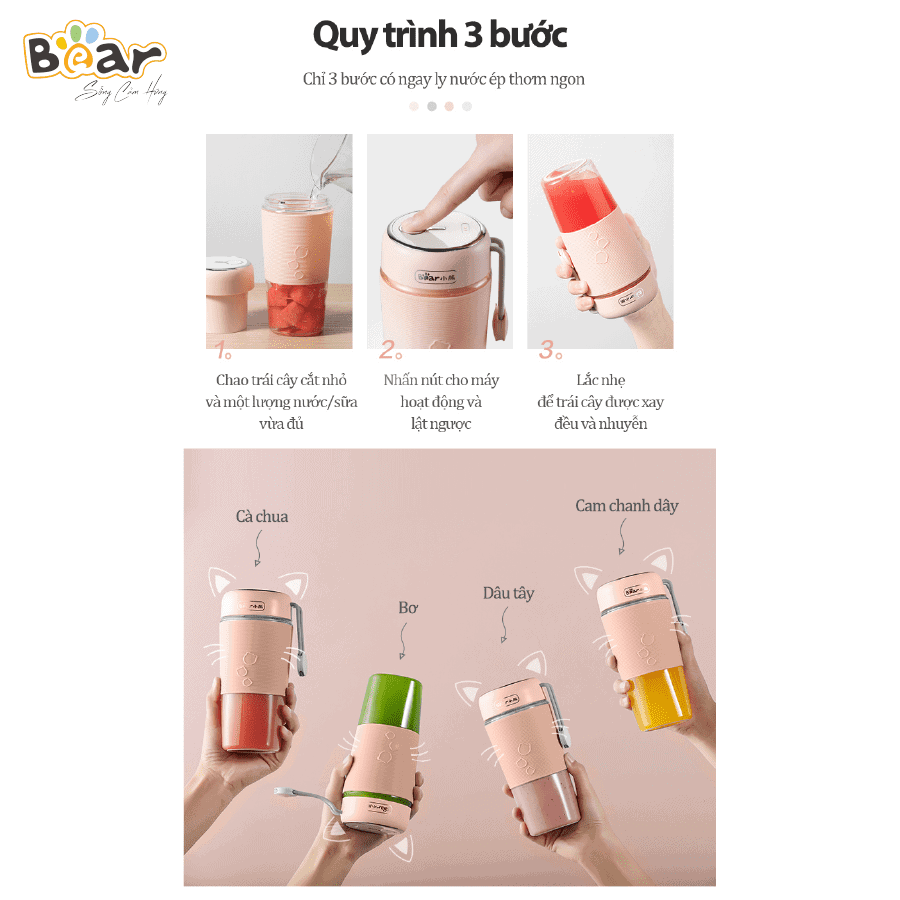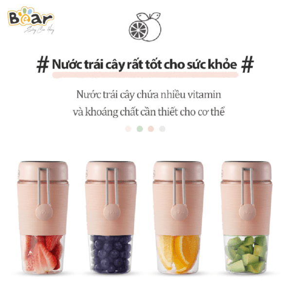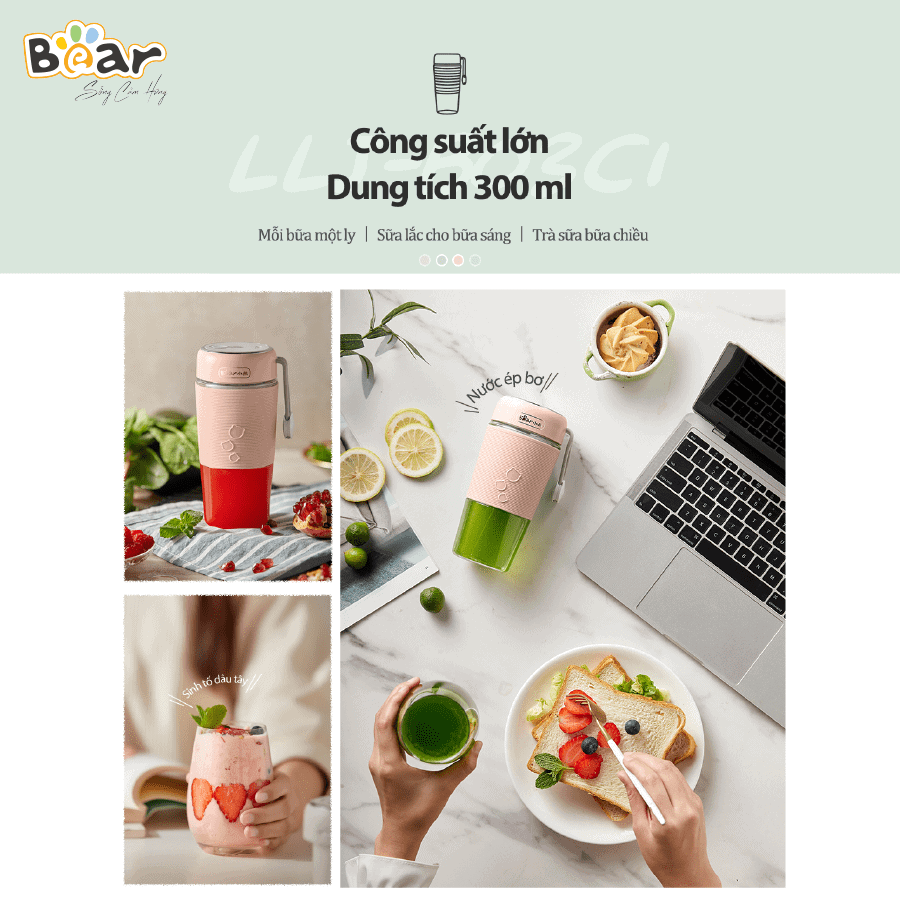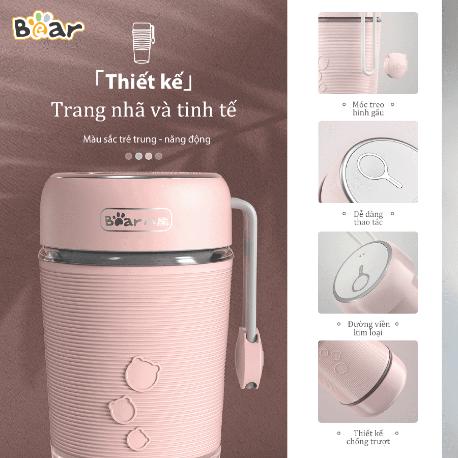 Máy xay sinh tố cầm tay Bear LLJ-B03C1 là gia dụng nhà bếp nhỏ gọn, tiện lợi, sự lựa chọn cho những ai thường xuyên di chuyển mà vẫn cần những ly sinh tố thơm ngon để bổ sung dinh dưỡng cho cơ thể.