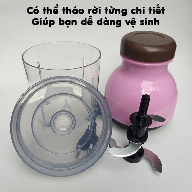 ❶ Gồm 3 phần chính, 1 motor với 2 cấp độ xay, 1 cối chứa thịt xay bằng nhựa, 2 lưỡi dao tác động kép.