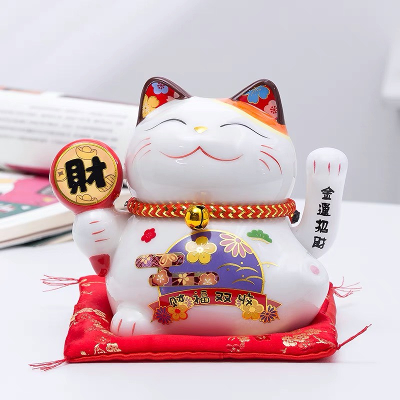 Mèo thần tài với các biểu tượng mang ý nghĩa tài lộc, may mắn trong phong thủy và nét mặt tươi cười, mèo thần tài mang tới một không khí vui tươi, náo nhiệt, cũng như sự bội thu trong kinh doanh buôn bán.