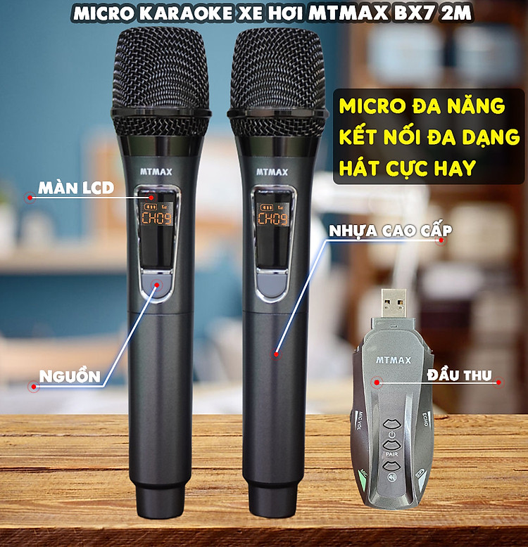 Micro karaoke dành cho ô tô MTMAX BX7 2M phiên bản mới đa năng cao cấp - Biến mọi loa nghe nhạc thành loa karaoke. Hàng Chính Hãng
