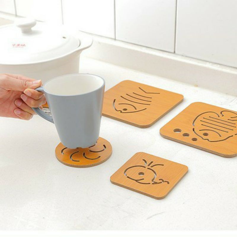 Nhà cửa & Đời sống > Bộ đồ bàn ăn > Khay, tấm lót bàn ăn || MIẾNG LÓT NỒI LÓT LY BẰNG GỖ CÁCH NHIỆT KHẮC HOA VĂN HÌNH THÚ- MIẾNG GỖ KÊ NỒI NHIỀU HÌNH SIZE LỚN 15cmx 15cm
