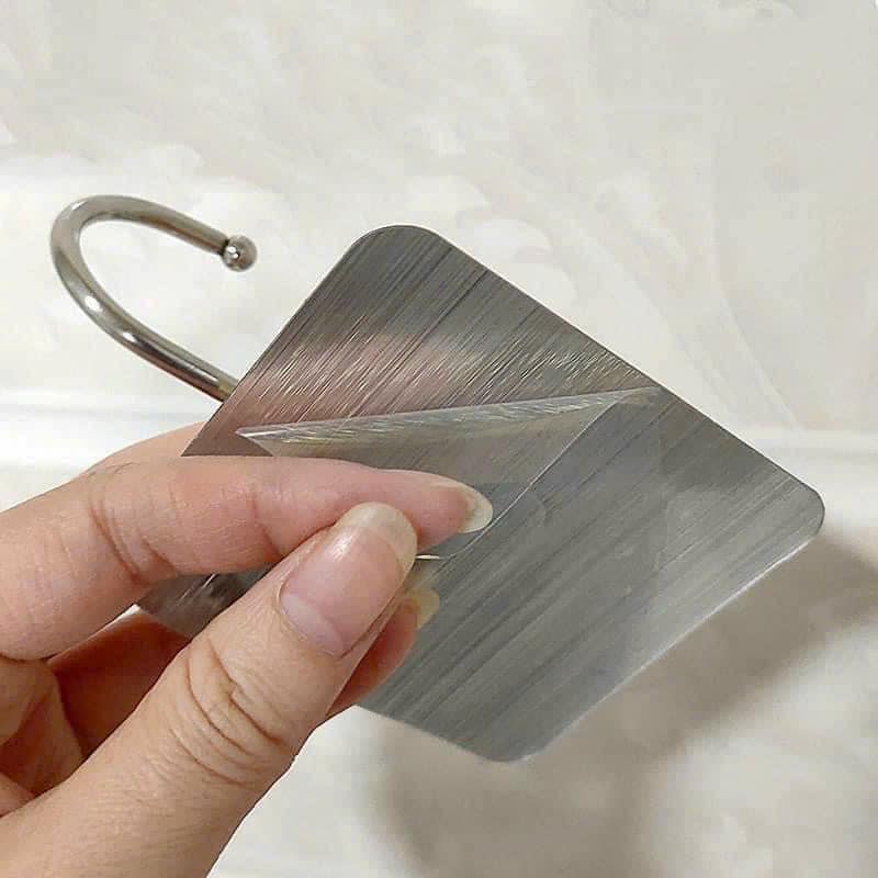 Dùng để treo đồ, quần áo, túi xách, nón, Đồ dùng nhà bếp, nhà tắm… giúp không gian nhà luôn gọn gàng, ngăn nắp. – Đầu móc tròn mịn, không làm hỏng hay rách quần áo, đồ dùng. – Cố định vào cánh cửa, tủ áo,… Bóc màng móc treo ở phía sau để dán một cách dễ dàng mà không phải đóng đinh, khoan tường. – Cơ động, dễ di chuyển lắp ở nhiều vị trí khác nhau. – Chất liệu sắt phủ sơn tĩnh điện bền, đẹp, sử dụng được lâu dài. - Bề mặt keo dán acrylic (loại dán tốt nhất hiện nay) - Cân nặng có khả năng chịu lực: 5-10kg - Màu sắc: vàng, bạc - Chất liệu: Nhựa PVC, inox - Kích thước miếng dán: 7 x 7 (cm)
