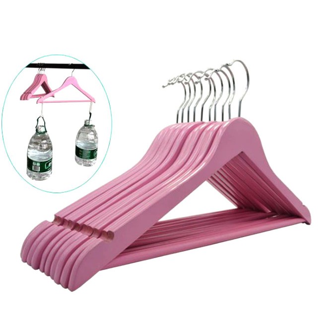 Móc gỗ thông cao cấp phủ bóng màu hồng nhạt có thang ngang. Thiết kế mới màu sắc trẻ trung năng động, thích hợp cho treo trong các cửa hàng quần áo tuổi teen.