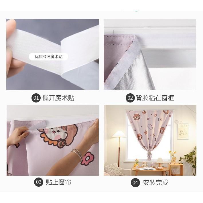 Rèm dán Velcro không cần khoan đục tường hay thanh treo, Tặng kèm keo dán trực tiếp vào tường.