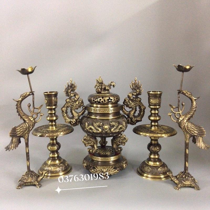 Đôi chân nến được đúc bằng công nghệ 3D, họa tiết tứ linh tinh xảo sắc nét cao 29cm (nặng 2.2kg)