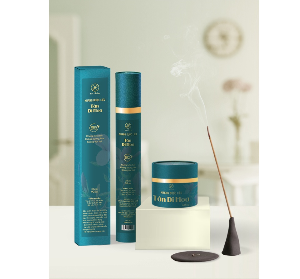 Giới thiệu Nhang cây dược liệu thơm sạch, ít khói Tân Di Hoa Herbio - Hương thơm giúp thông mũi, giảm đau mỏi xương khớp - An toàn dùng trong gia đình - Ống/Hộp 40cm x 90 cây