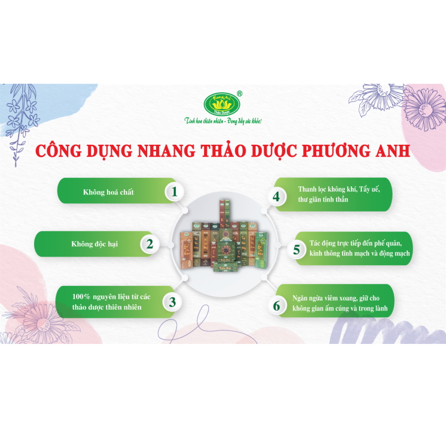 ĐẶC BIỆT : Nhang Sạch Thảo Dược Hoa Tâm Hương của Thảo Dược Phương Anh còn có tác dụng Ngăn ngừa và hỗ trợ điều trị bệnh viêm xoang ,tác động trực tiếp đến phế quản, giúp cho kinh thông động mạch, tĩnh mạch trong cơ thể