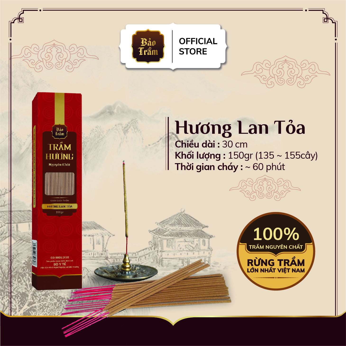 Giới thiệu Nhang Trầm Hương Lan Tỏa 150G - 30/40cm - Hương thơm lan tỏa nhẹ nhàng - Nhang Sạch Bảo Trầm-Trầm Hương Nguyên Chất