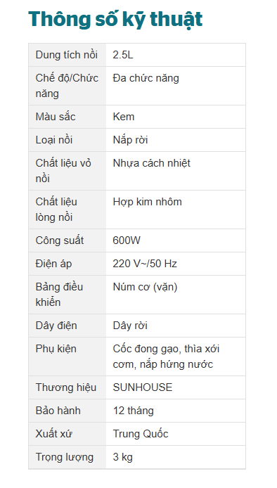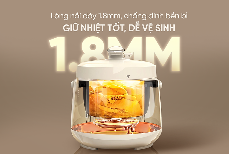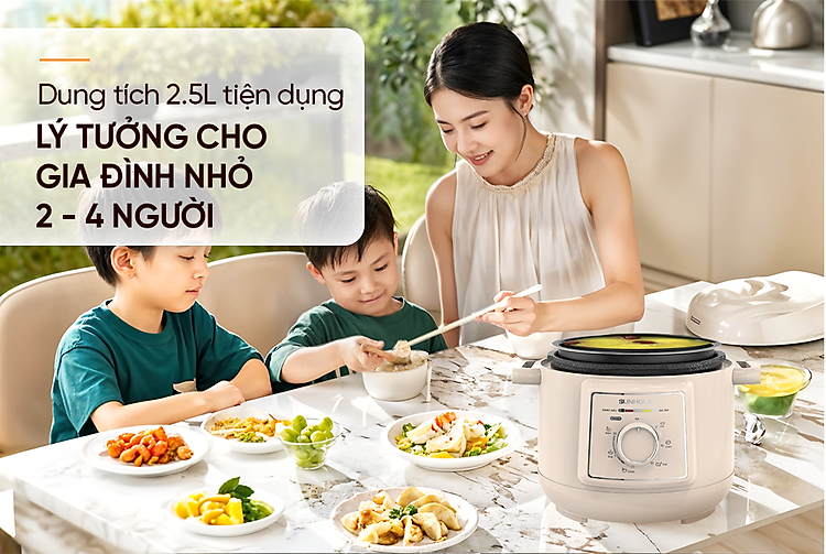 Với dung tích 2.5L, sản phẩm đáp ứng tốt nhu cầu nấu ăn hằng ngày như nấu cơm, cháo, súp hay hầm xương cho 2 - 4 người. Đây là lựa chọn lý tưởng cho các gia đình ít người hoặc người dùng yêu thích thiết bị nhỏ gọn, tiện lợi mà vẫn đa năng.