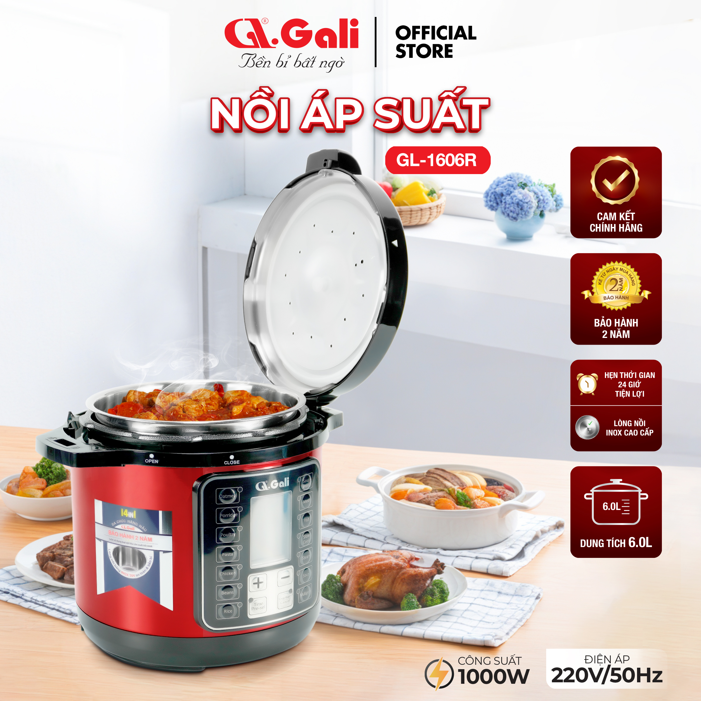 Nồi Áp Suất Điện Tử Gali - 6L, Lòng Nồi Inox Nấu Nhanh, Giữ Nhiệt Tốt – Bảo Hành 2 Năm GL-1606R