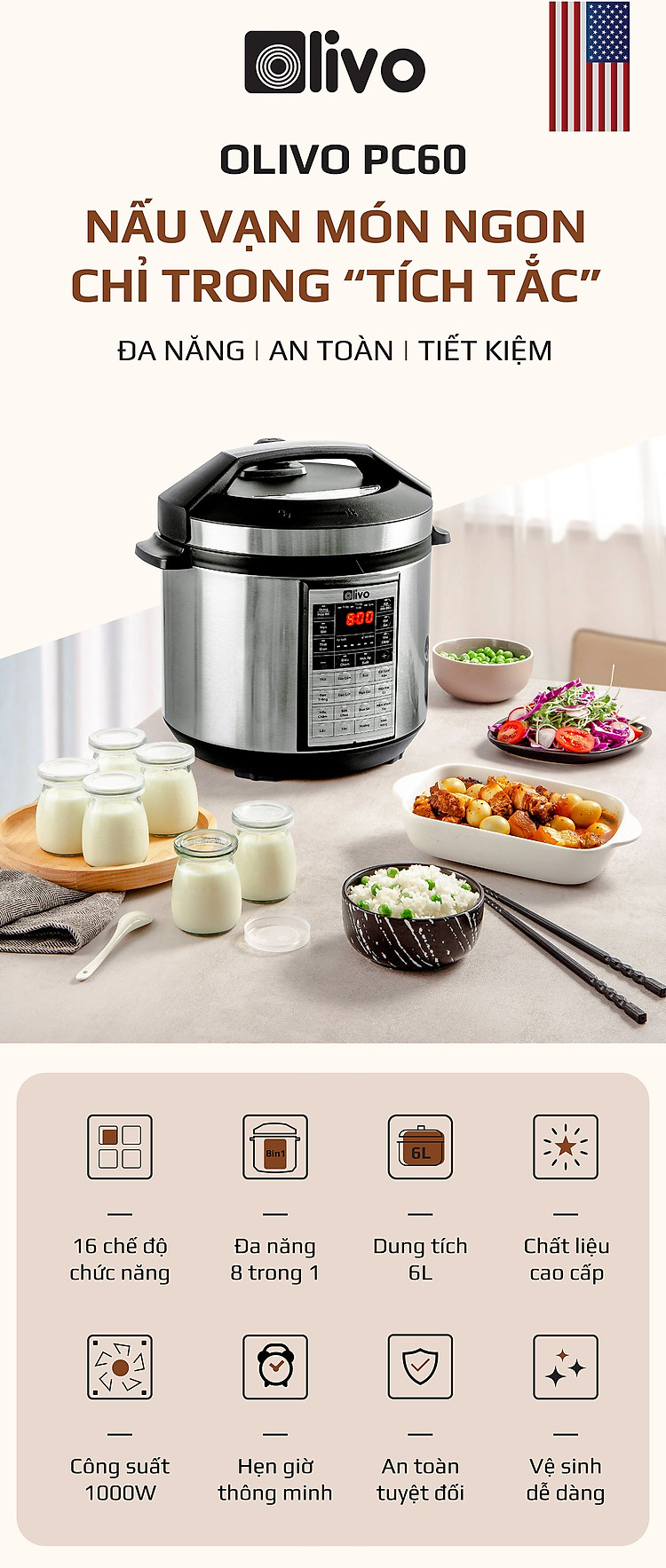 Giới thiệu Nồi Áp Suất Điện Hàng Chính Hãng Olivo PC60 - 16 Chức Năng - Dung Tích 6L - Công Suất 1000W - Thương Hiệu Mỹ
