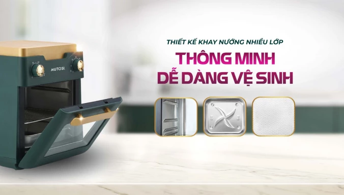 Có thể kết hợp để tối đa 3 khay nướng và nấu trọn vẹn một bữa cơm chỉ trong một lần duy nhất, tiết kiệm tối đa thời gian nội trợ. Khay nướng và khay hứng mỡ có thể tháo lắp linh động, dễ dàng vệ sinh.