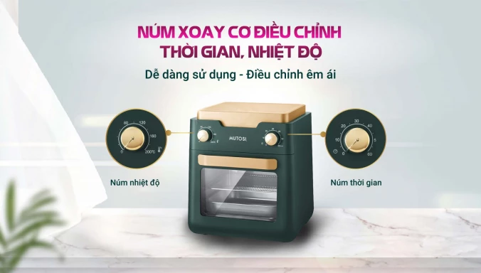 Sở hữu 2 núm xoay điều chỉnh thời gian lên đến 60 phút và nhiệt độ tới 200*C, dễ dàng sử dụng và nấu các món cần thời gian dài, nhiệt độ cao.