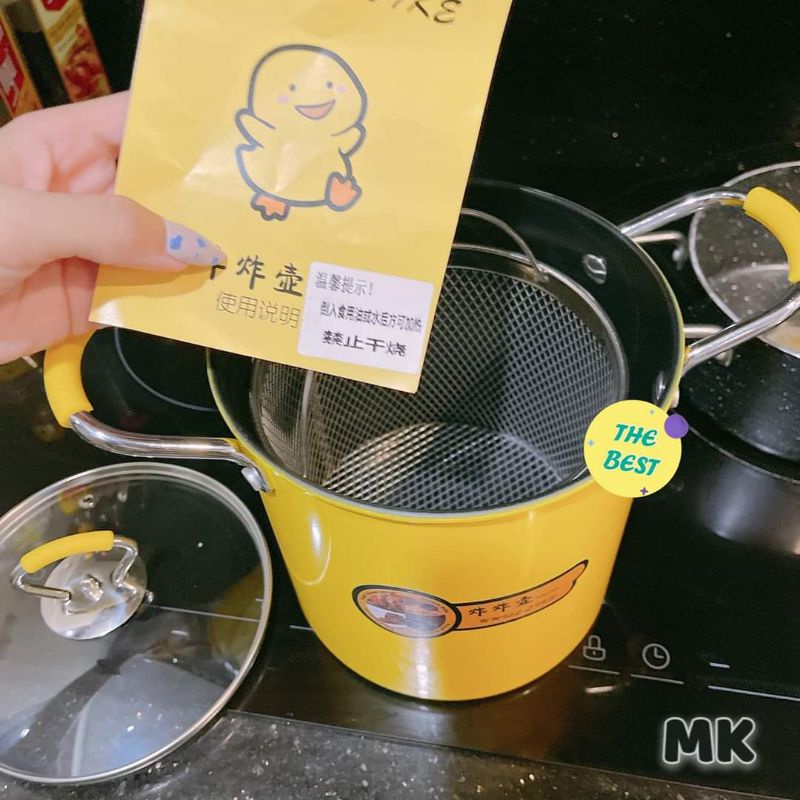 Tên sản phẩm: Nồi Chiên Ngập Dầu Mini Vịt Vàng Kèm Rổ Inox Cao Cấp (Nồi Cao 18cm)