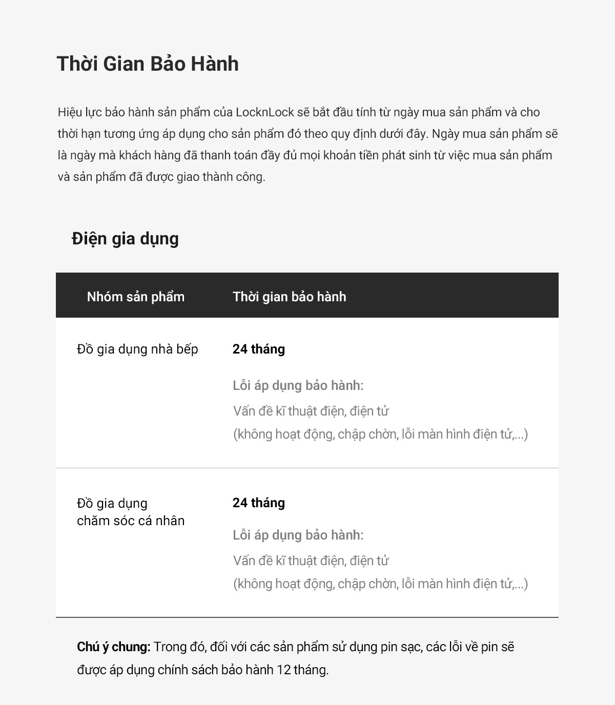 ** Lưu ý về bảo hành: