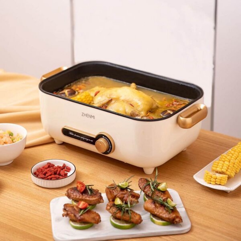 - Là một sản phẩm đa năng, nồi lẩu điện ZHENMI có thể đảm nhận nhiều chức năng khác nhau. Bên cạnh nấu lẩu, người dùng còn có thể sử dụng nồi để làm các món chiên, xào, hâm, hấp và cả những món đồ nướng. Với thiết kế hữu dụng này, bất kể người không biết nấu ăn cũng có thể trổ tài nấu nướng dễ dàng.
