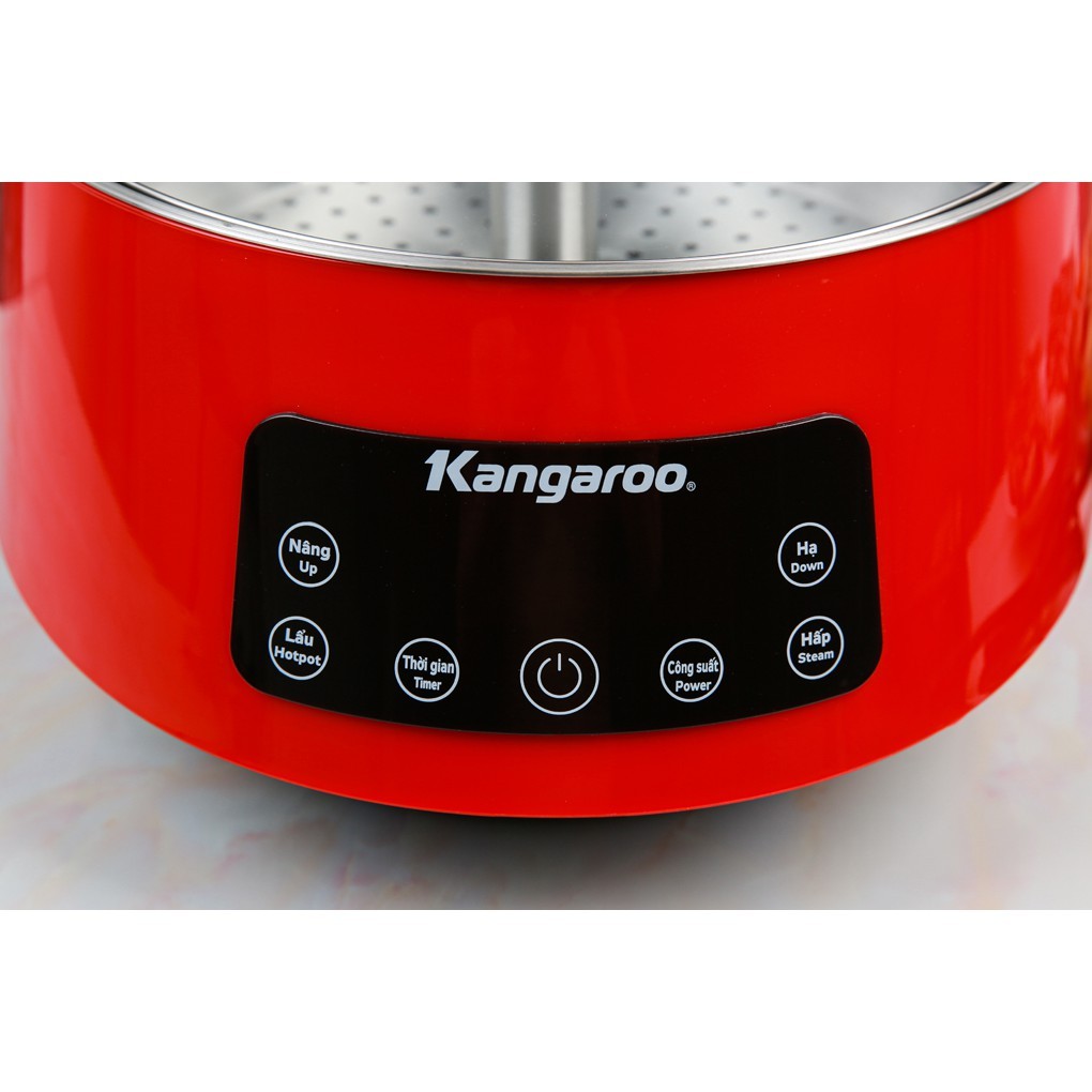 - Nồi lẩu thang máy Kangaroo dung tích 5 lít, nấu được nhiều thức ăn trong 1 lần, công suất cao 1800 W, thức ăn chín nhanh hơn.