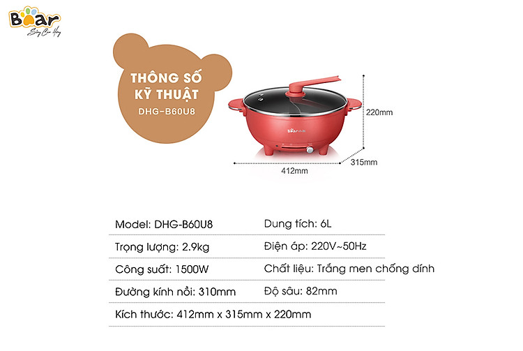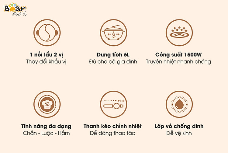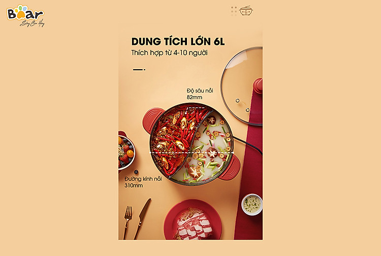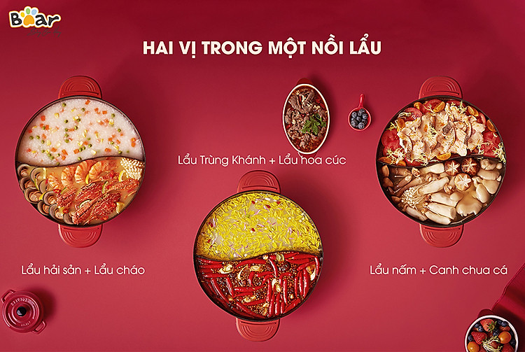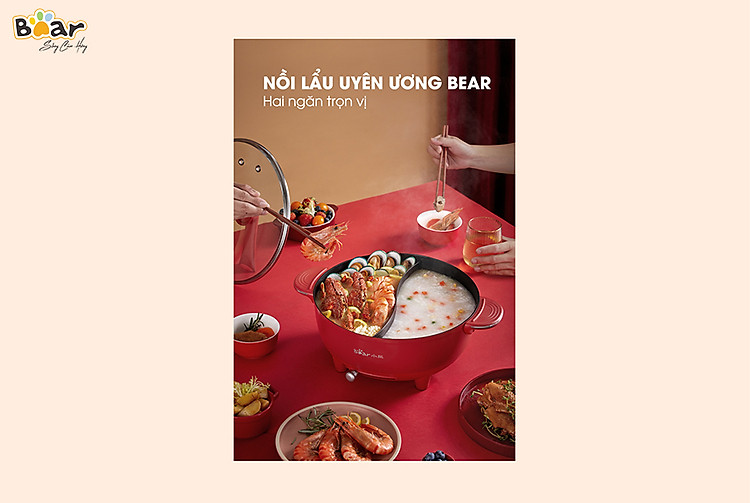 Phiên bản nồi lẩu uyên ương Bear SUBE006 (bản quốc tế) với 2 ngăn lẩu riêng biệt giúp tận hưởng hai hương vị ngay trong một nồi lẩu. Sản phẩm chất lượng cao phù hợp với nhiều nhu cầu sử dụng, trải nghiệm ngay!