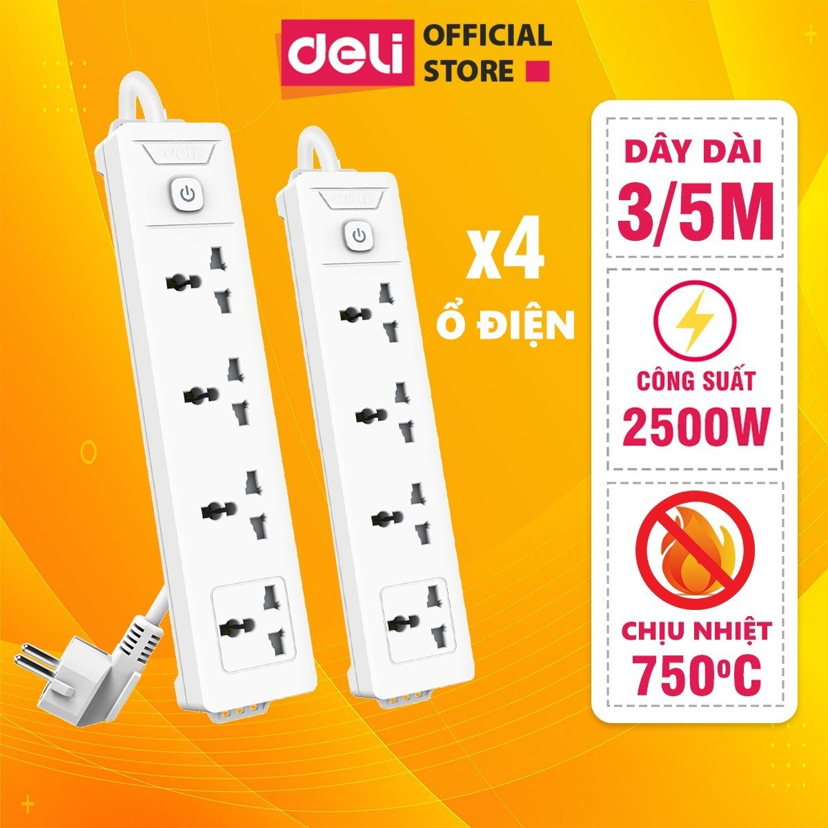 Ổ Cắm Điện Đa Năng Có Công Tắc Nguồn 3/4/6 Ổ , 3/5M Dây Chống Giật Chống Cháy Chất Lượng Cao Deli - Hàng Chính Hãng - ET401 - 406