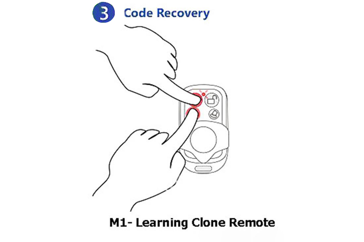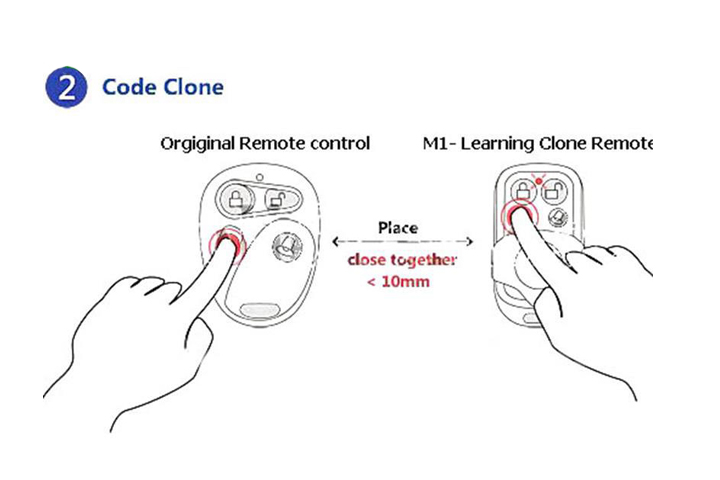 Đặt remote gốc và remote clone gần với nhau (<10mm), cùng lúc bấm và giữ một nút trên remote gốc và nút trên remote mà bạn muốn lập trình. Sau khoảng 3s, LED chỉ thị sẽ liên tục nhấp nháy nhanh để chỉ thị rằng việc sao chép nút bấm đó thành công.
