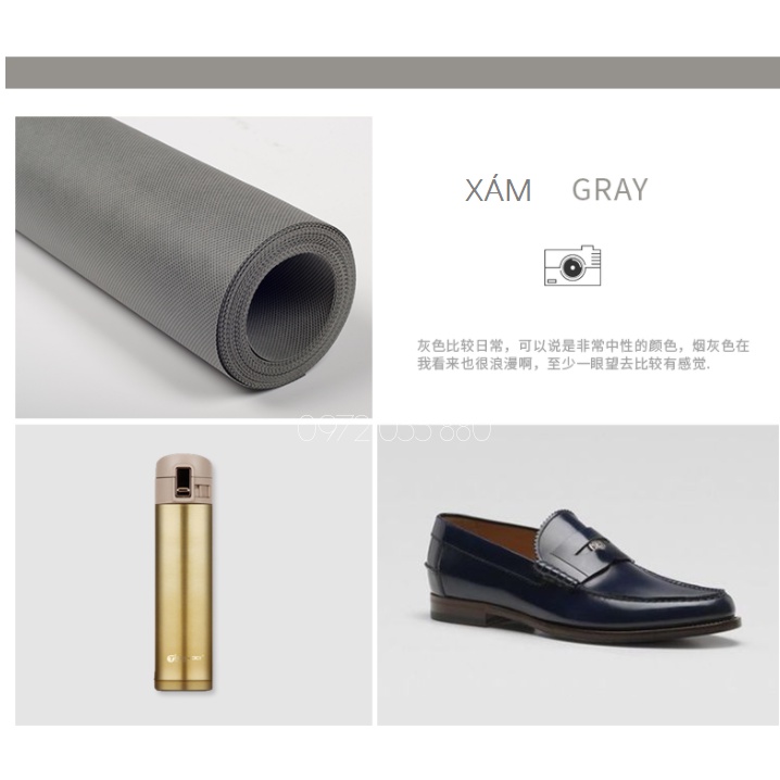 Màu sắc: Trắng, xám, đen, xanh lá, xanh da trời, xanh dương đậm, đỏ, vàng, nâu, hồng