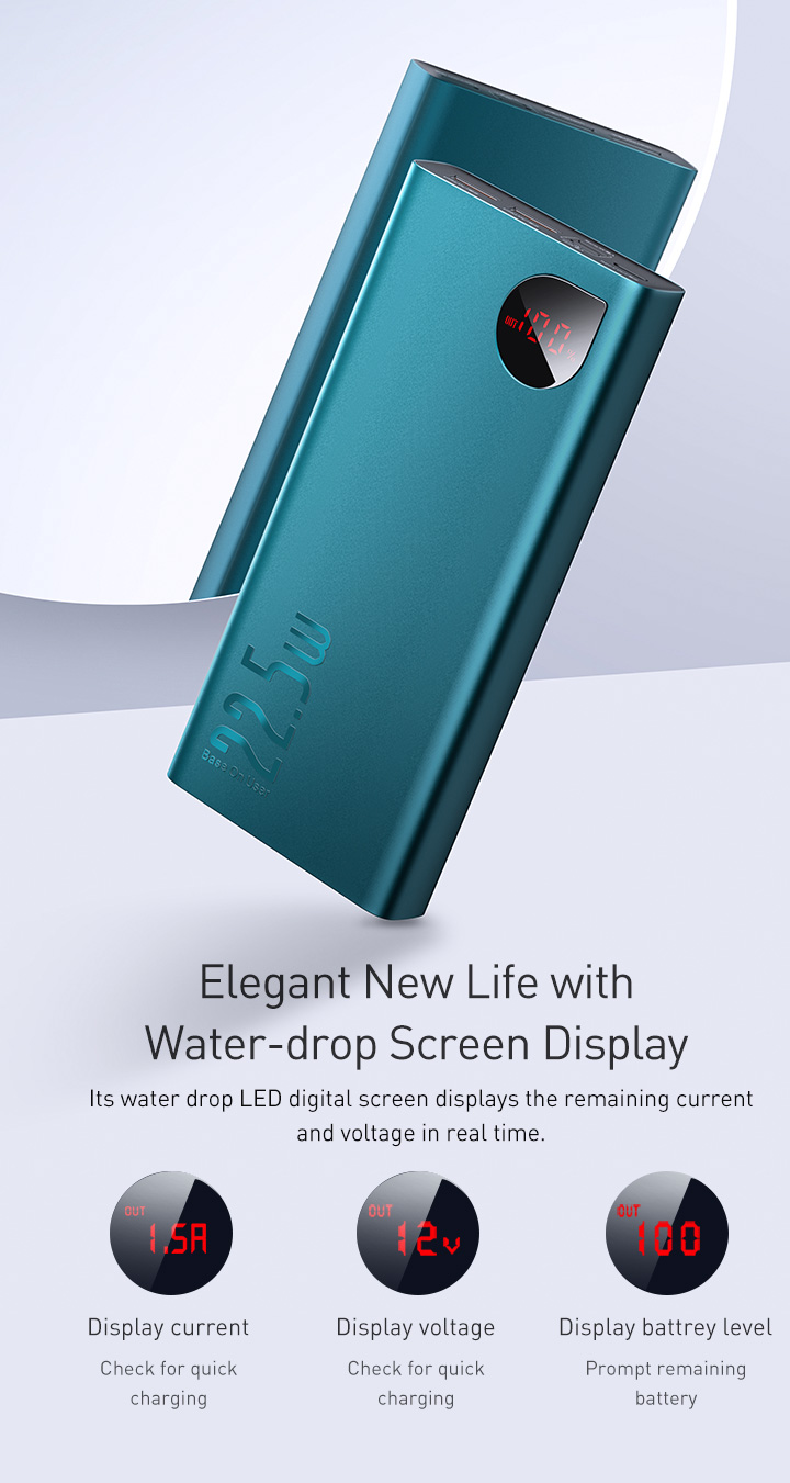 - ĐƯỢC tích hợp chip xử lý nguồn thế hệ mới có hiệu suất sử dụng cao, độ ổn định vượt trội cùng với cơ chế bảo vệ thông minh . Pin dự phòng sạc nhanh Baseus Adamgn Metal Digital cho mức điện áp sử dụng ổn định, đảm bảo an toàn cho thiết bị và người sử dụng