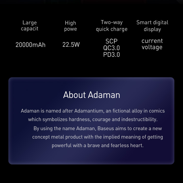Giới thiệu Pin dự phòng sạc nhanh Baseus Adaman Metal Digital Display Quick Charge 22.5W 20000mAh (QC3.0/ PD3.0/ SCP/ AFC Quick charge Power Bank)