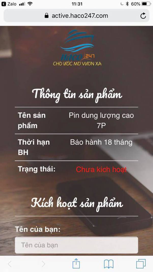 Quét QRCode kích hoạt thông tin bảo hành online.