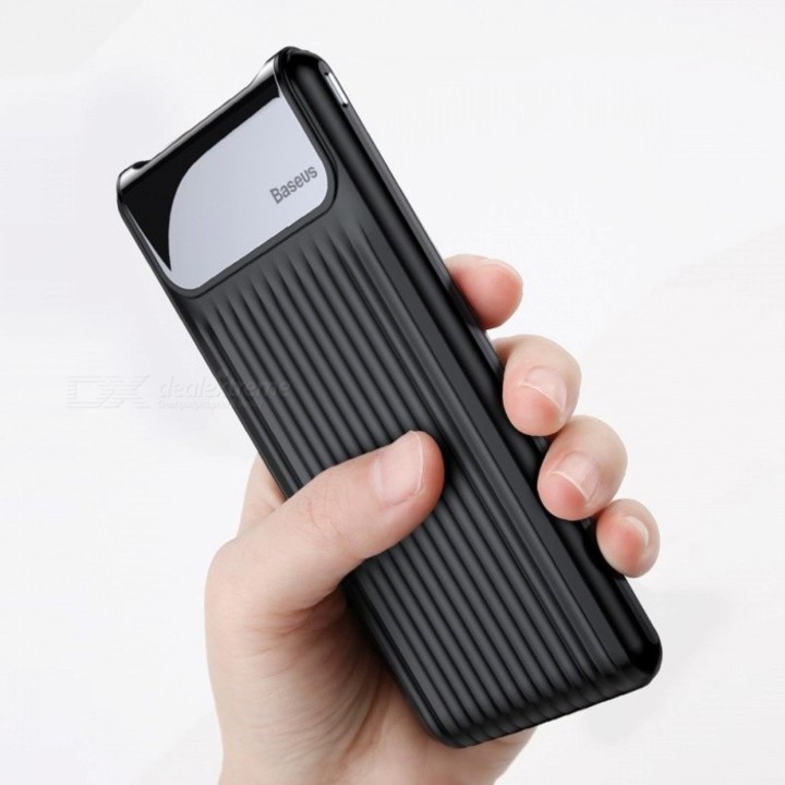 Màn hình LCD này cho biết dung lượng pin còn lại, mức điện áp đang dùng để sạc cho thiết bị hiên tại. Pin sạc dự phòng sạc nhanh Baseus PPYZ-C01 có cổng Micro USB và USB Type C (dòng 2A max) giúp rút ngắn thời gian sạc đầy cho pin sạc. Cổng ra là 2 port USB hổ trợ dòng lên đến 2.1A và Quick charge 3.0 có thể sạc pin cho 2 thiết bị cùng lúc.