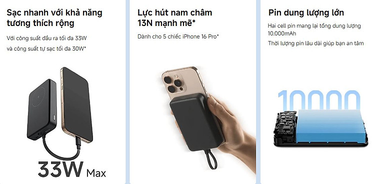 Giới thiệu Pin sạc dự phòng không dây Xiaomi 33W Magnetic Power Bank 10000 mAh Kèm cáp sạc Type C - GiaPhucStore | Hàng Chính Hãng