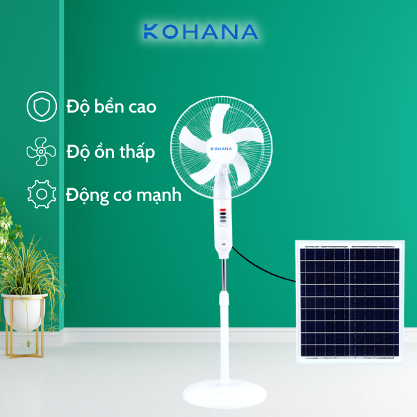 2. Độ bền từ 10 đến 12 năm: Quạt năng lượng mặt trời Kohana sở hữu bộ linh kiện tối tân nhất hiện nay, công nghệ sản xuất hiện đại, vì thế độ bền có thể lên tới 12 năm, lại không lo chập cháy, nổ do dây điện như quạt thông thường